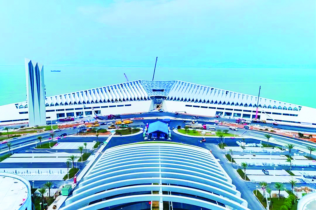 為克服西人工島現(xiàn)場空間小、工期緊張等困難,項目團隊設法改進安裝工藝。項目采用“先雙片地面臥拼再高空合攏”的拼裝方式,將原來的單7字吊裝改為雙7字吊裝,在保證安全的同時,安裝效率提升50%。島上的造型結(jié)構最大跨度140米,精度控制難度高,項目成立技術專班,聚焦關鍵環(huán)節(jié)——6榀動載結(jié)構的桁架安裝合力攻關,運用滑移支座實現(xiàn)安全平穩(wěn)安裝(通過在桁架底部埋件預先焊接滑移支座,提升桁架在應對大風等較大速率載荷時的性能),通過整體動載調(diào)試檢測確保精準就位。項目還采用了雙全站儀多點復核的測量方法,給精度控制加上“雙保險”,確保吊裝、焊接質(zhì)量。專家兩度上島檢測驗收,工程質(zhì)量均收獲認可,最終于6月15日深中通道西人工島如期通過“大考”。