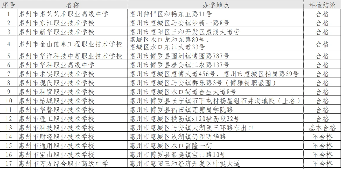 惠州市民辦中等職業(yè)技術(shù)學(xué)校2023年度檢查結(jié)果