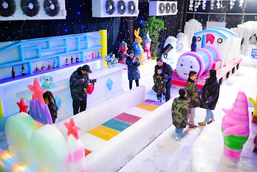 如果說泡在水里能讓清涼浸潤全身,那么走進“冰雪世界”則一秒穿越到冬季。記者在港惠新天地的一家室內冰雪主題場館看到,不少家長帶著小孩走進“冰天雪地”,在南方的夏天感受北方冬日玩雪、滑冰的快樂。