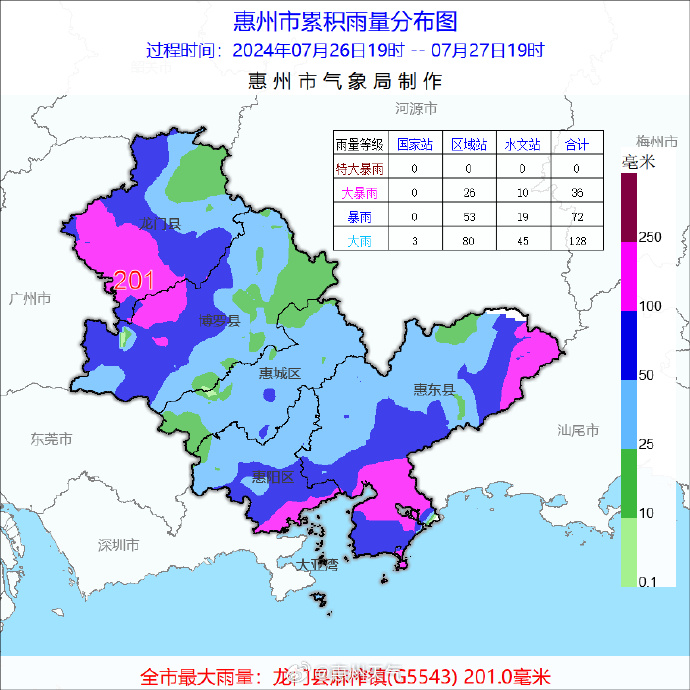 過去 24 小時,我市南部縣區(qū)和東部山區(qū)出現(xiàn)暴雨到大暴雨,其余地區(qū)中到大雨局部暴雨,局地伴有雷暴和 6~7 級短時大風(fēng),喜洲島錄得最大雨量 182.1毫米、其次為惠東高潭179.3毫米。預(yù)計,今明兩天我市仍有大雨到暴雨局部大暴雨,需繼續(xù)防御強(qiáng)降水和強(qiáng)對流天氣及其可能引發(fā)的次生災(zāi)害。