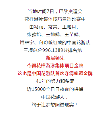盡管動作完成得如此出色,此前在集體技術自選和集體自由自選中,又獲得了近70分的領先優勢,但出水后的姑娘們仍不敢慶祝。直到現場宣布冠軍屬于中國時,教練和隊員們才釋放了自己全部的情緒。