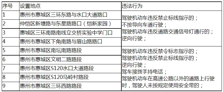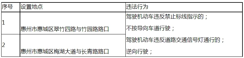 抓拍逆行、不按導向車道行駛、駕車接撥手持電話……連日來,惠州交警多次發布《關于再次公布固定式交通技術監控設備地點的公告》,對位于市區三環東路與水口大道路口、南壇南路等12個路段的固定式交通技術監控設備(俗稱“電子警察”設備)設置地點向社會公布,希望廣大車主駕車注意遵守交通秩序,安全文明出行。