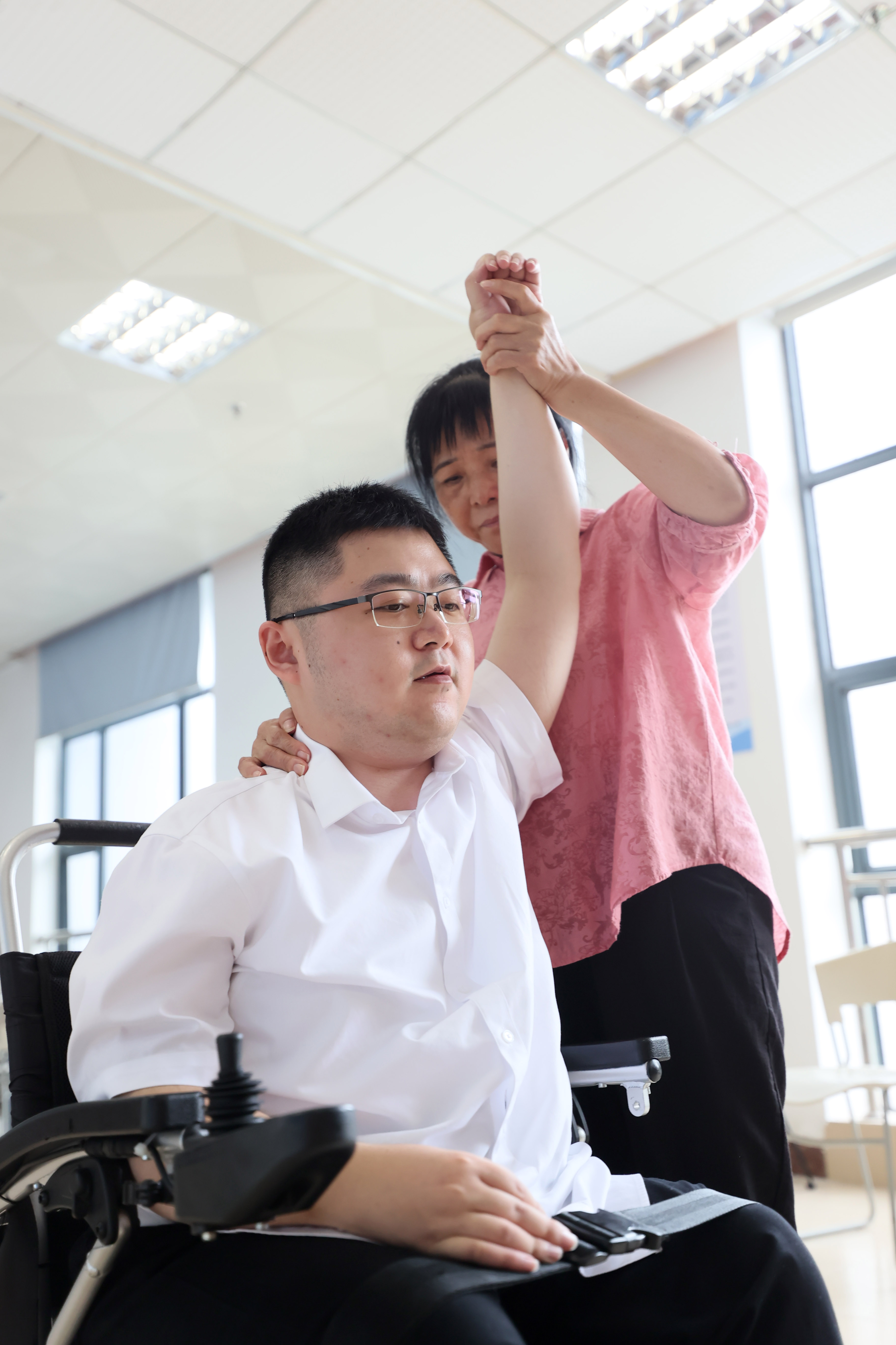2024年9月6日,歇息時間,李惠云為兒子按摩,緩解陳斌手腳長時間不動的情況。