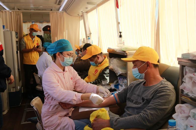 退役軍人志愿者參與無(wú)償獻(xiàn)血。