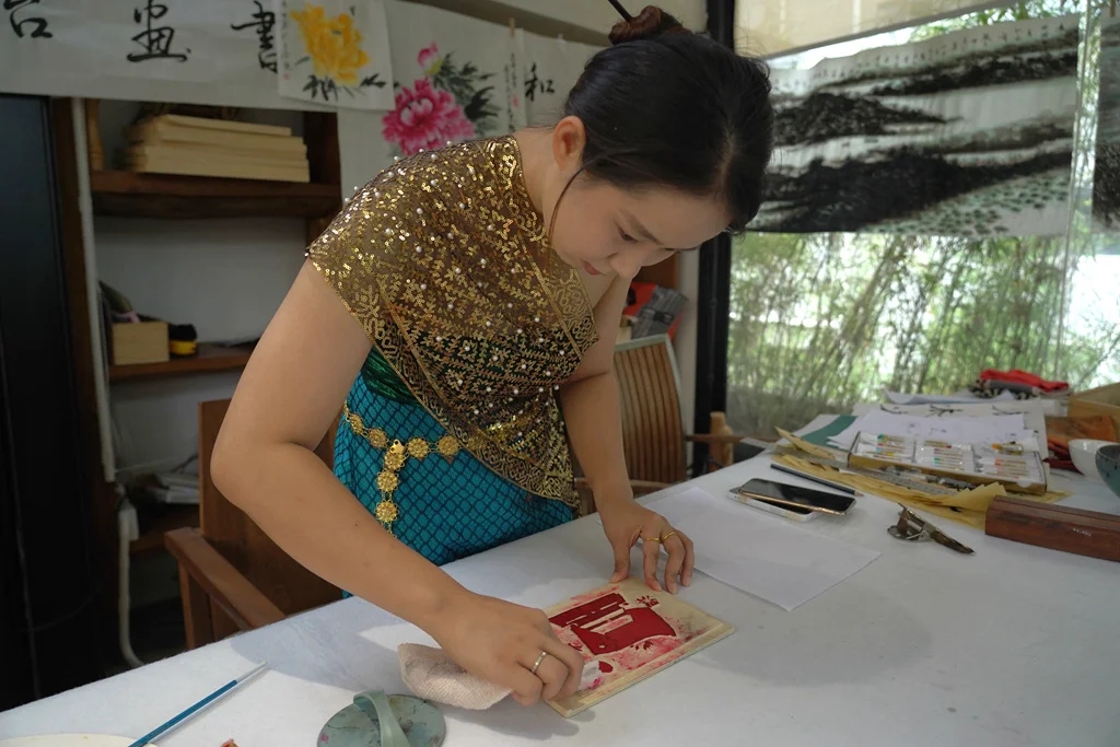 惠州五合院民宿內,每天前20名到店消費即可獲得5折非遺版畫體驗。