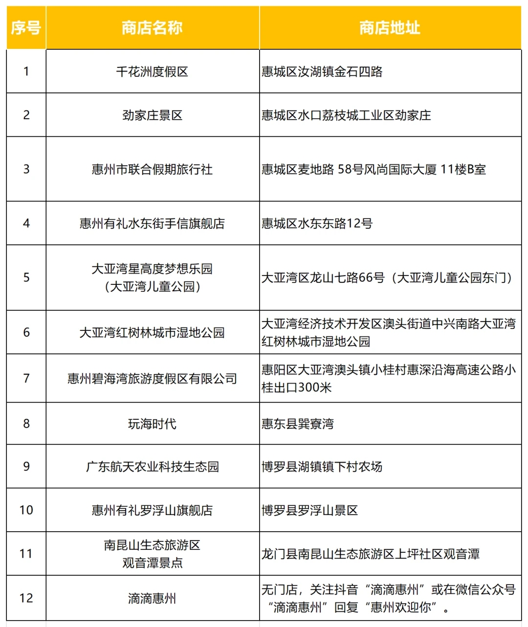表格 惠州文旅部門提供