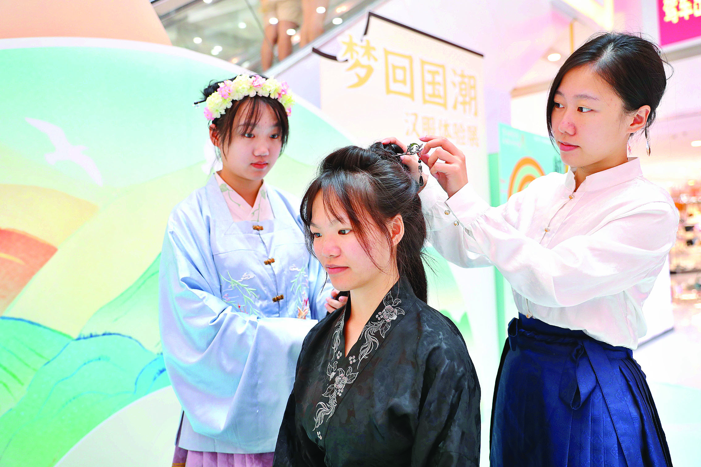 國潮風越吹越濃,年輕人穿起漢服扎起頭發。