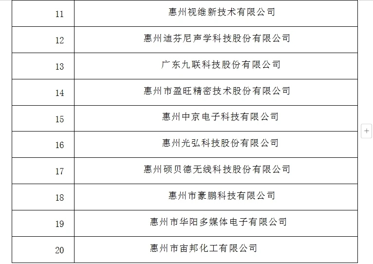 惠州重點(diǎn)高新技術(shù)企業(yè)名單發(fā)布