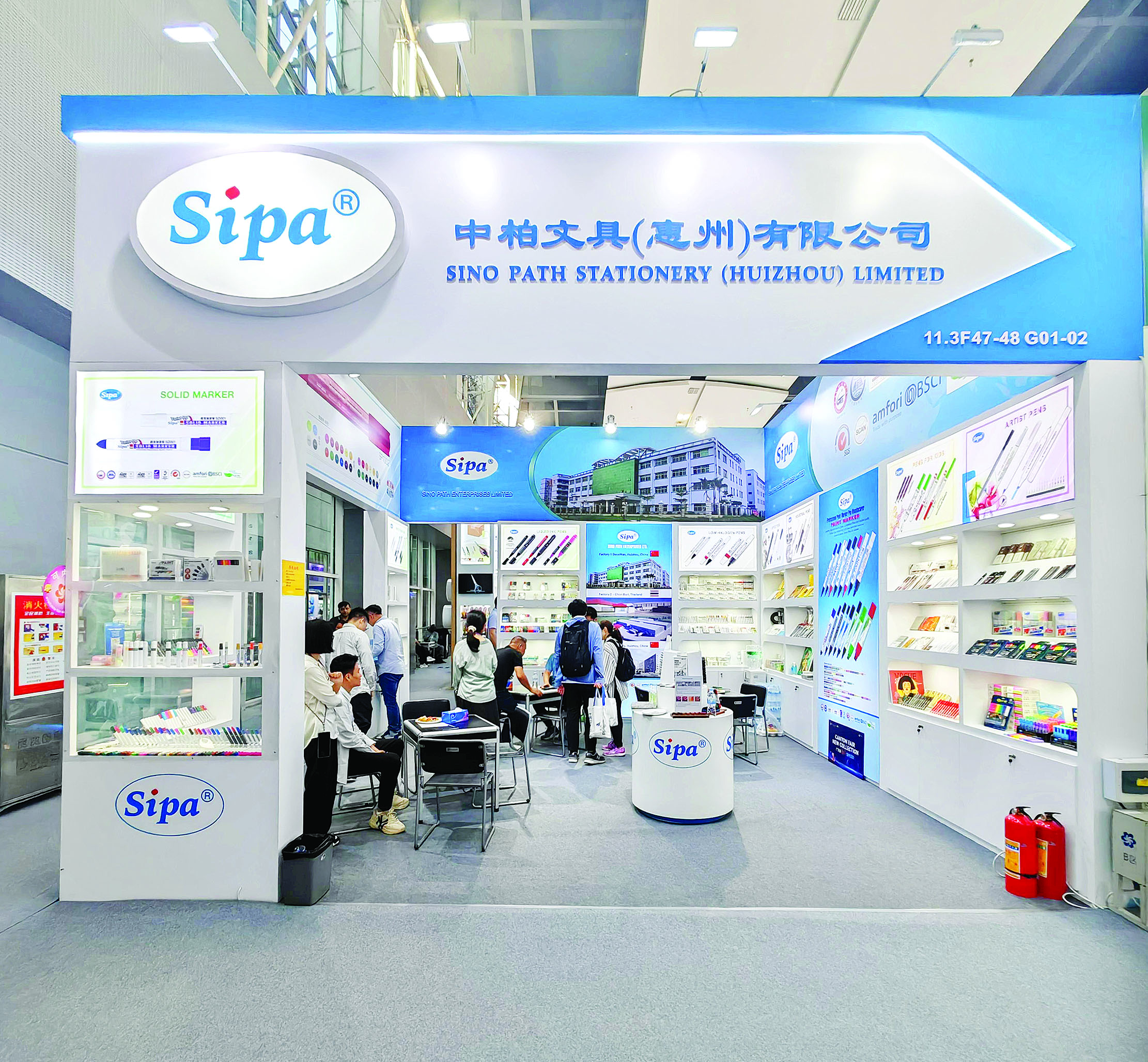 客商在中柏文具展位洽談。惠州日報記者劉煒煒 通訊員葉向軍 攝