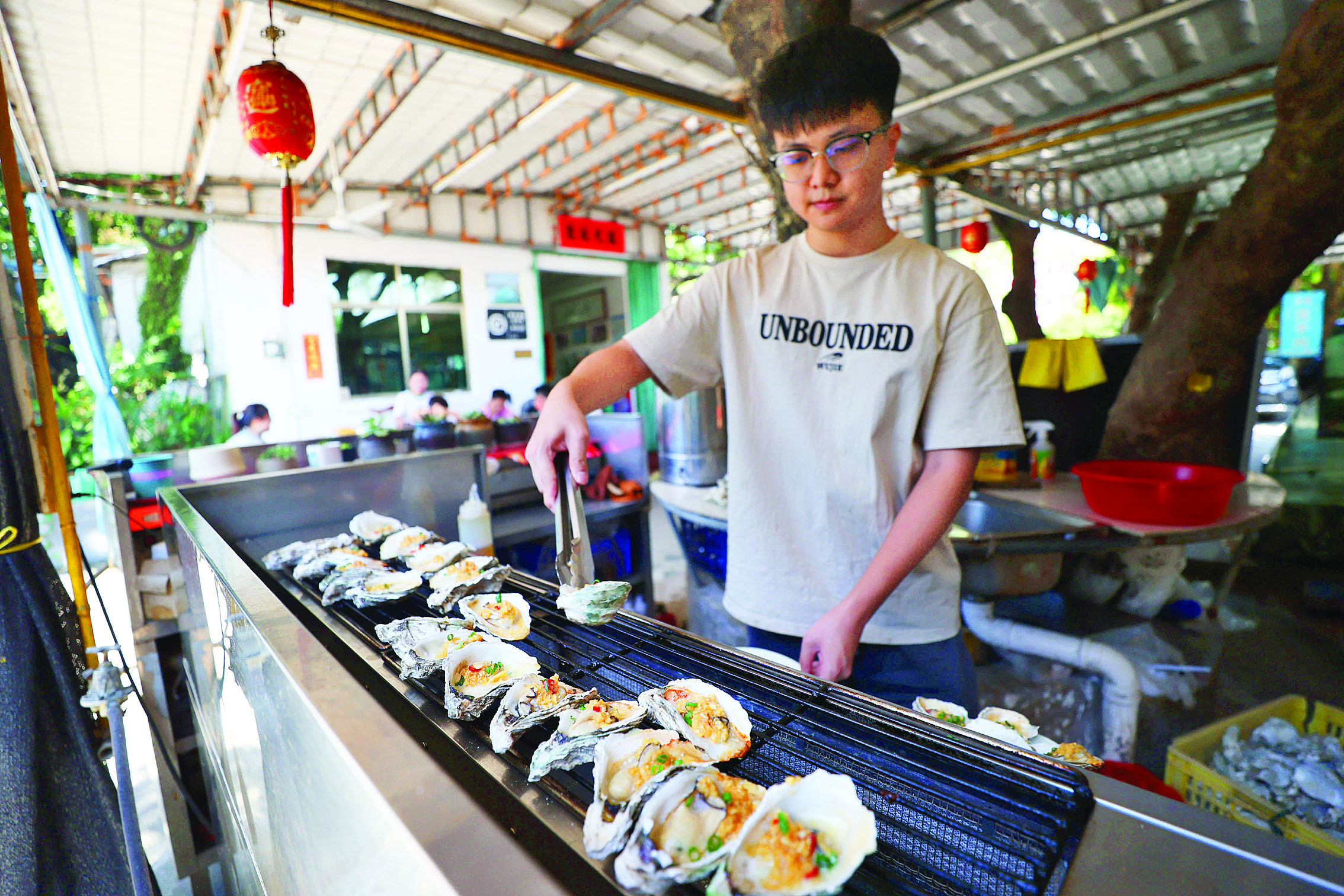 不少人慕名前來赤岸村品嘗生蠔,村子里開起了多家飯店。