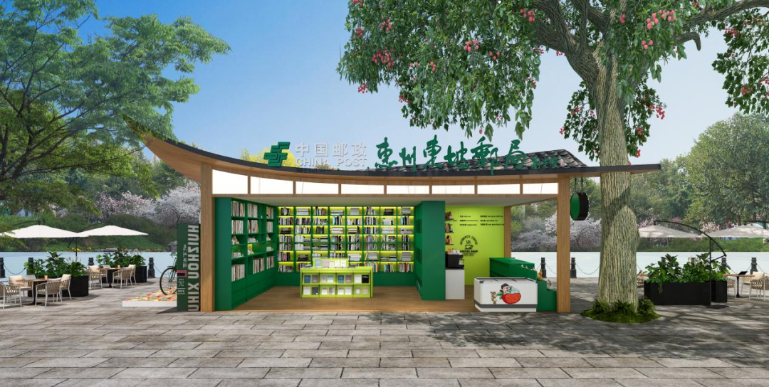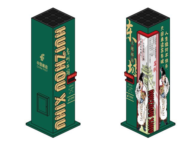 東坡主題郵局提取宋代建筑和東坡文化元素,結合西湖景觀,融合郵文化元素,并選取當代著名畫家劉克寧老師《問墨蘇東坡》畫作進行設計建造,連主題郵局的郵筒設計都別具特色,讓人驚艷!游客不僅可以在東坡郵局寄出給親人朋友的明信片,還可在游西湖時欣賞東坡郵局背面的燈光透視圖——《問墨蘇東坡》精美畫作。惠州東坡郵局將成為西湖景區文化、東坡文化和城市文化的全新展示窗口。