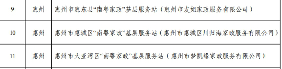 截至目前,惠州共有27個“南粵家政”基層服務站,省級家政服務龍頭企業的認定有1家,省級家政誠信示范企業的認定有3家,省級五星級企業的認定有1家。