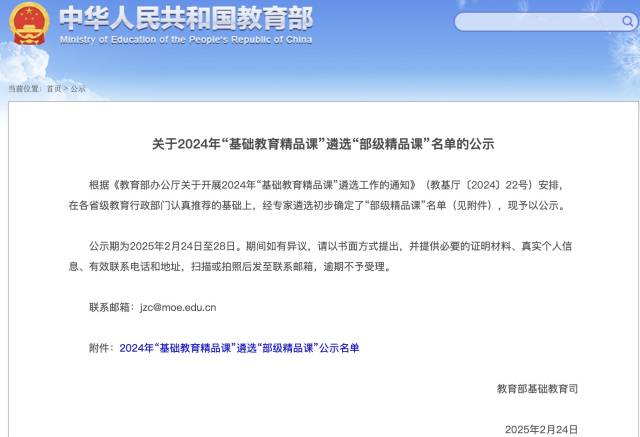 據(jù)悉,為深化教育教學(xué)改革,促進(jìn)基礎(chǔ)教育高質(zhì)量發(fā)展,教育部印發(fā)了《教育部辦公廳關(guān)于開展2024年“基礎(chǔ)教育精品課”遴選工作的通知》(下稱《通知》),在全國范圍內(nèi)繼續(xù)組織開展“基礎(chǔ)教育精品課”遴選工作。