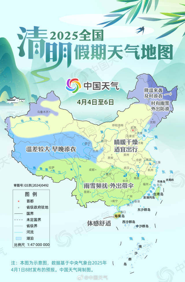 市氣象臺提醒,清明假期前期晴朗干燥,祭祖、踏青郊游等戶外活動需嚴防山火,做好火源管控;后期轉(zhuǎn)雨霧天氣,部分時段能見度較低,道路濕滑,需注意交通安全。
