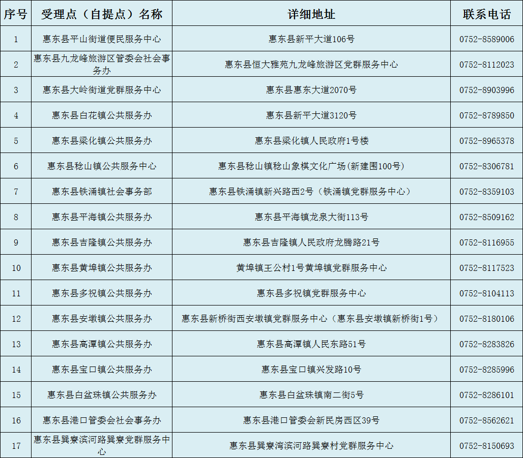 惠州市長者服務(wù)卡受理和自提點信息更新