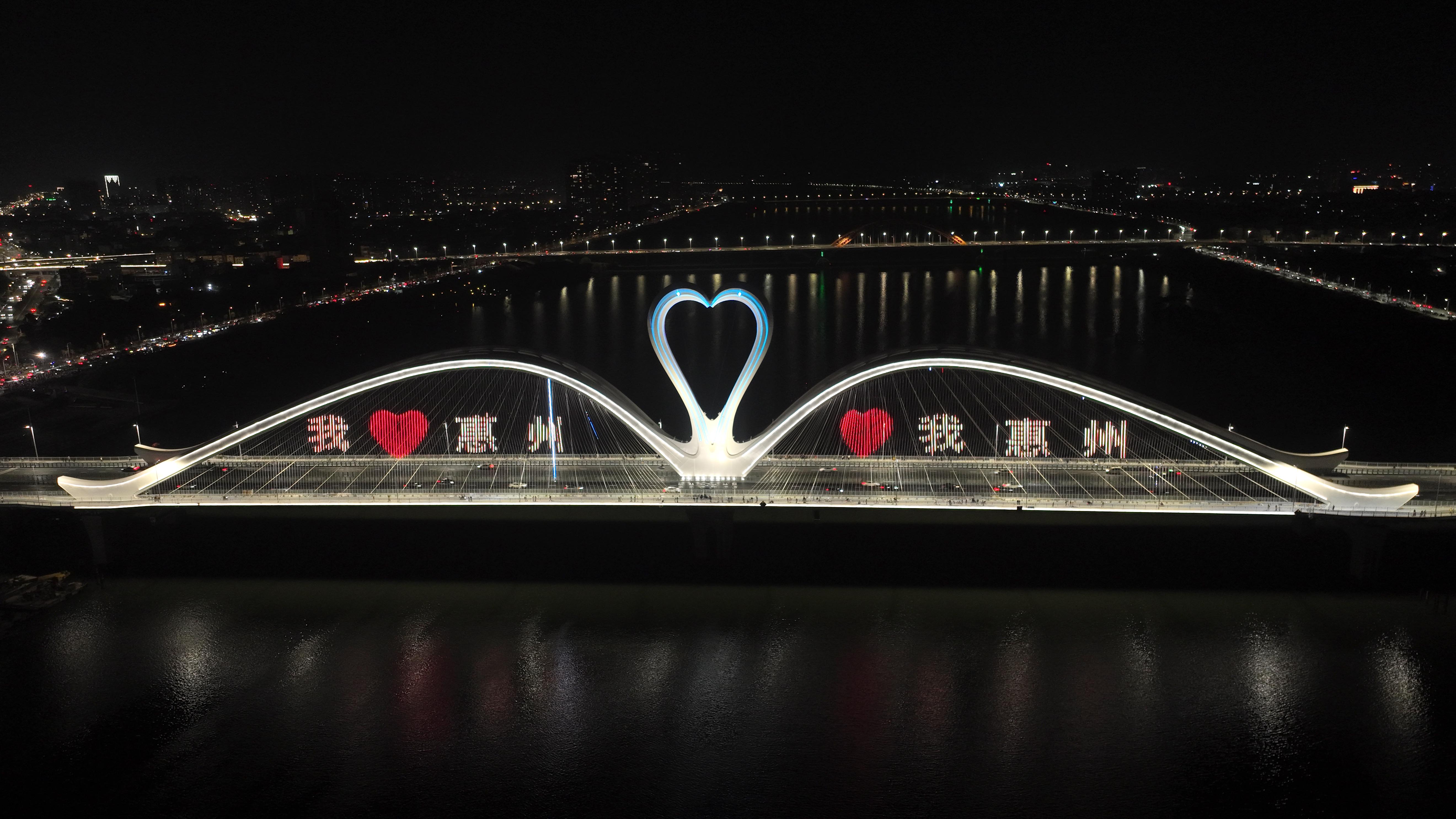 鵝城大橋通車后,不僅成為市區的交通要道,更化身為惠州的網紅景點。大橋橋體安裝了15.7萬點光源、5000盞洗墻燈,在惠州首次運用激光技術,通過16臺激光燈勾勒出大橋“天鵝”造型。每到節假日晚上,鵝城大橋就開啟燈光秀,充分展現惠州東坡文化以及特色節日文化。
