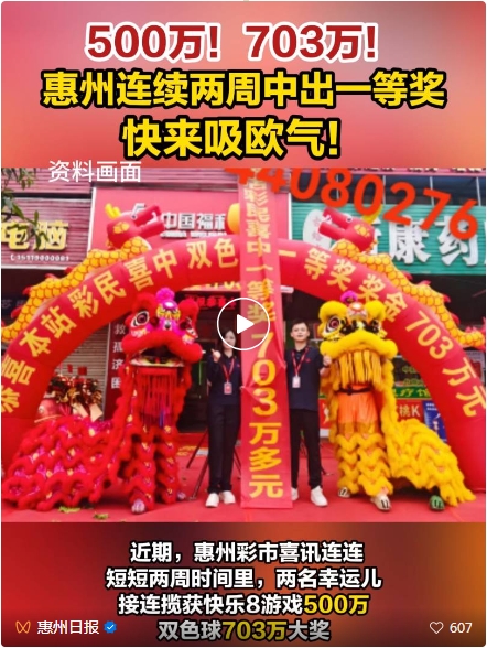 又中了!近期,惠州在短短兩周內,兩名幸運兒接連攬獲快樂8游戲500萬、雙色球703萬大獎。