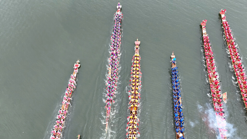 園洲鎮寮仔村來自各村及香港的八支龍舟進行競渡。