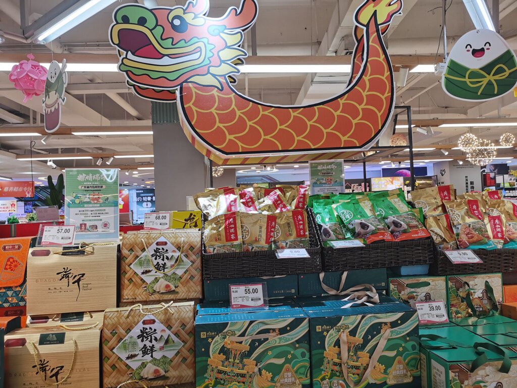 超市里各種粽子供應充足,端午節日氣氛濃厚。