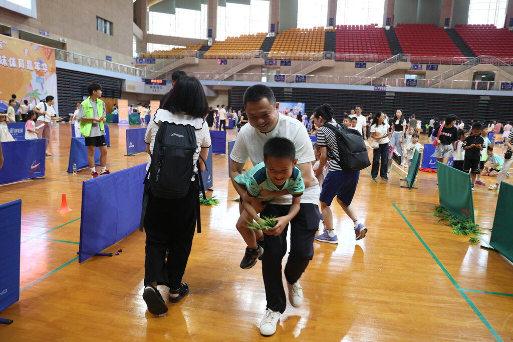 趣味體育嘉年華活動包括個人通關(guān)類、親子通關(guān)類、團體協(xié)作類、競賽類游戲等,圖為親子通關(guān)活動。