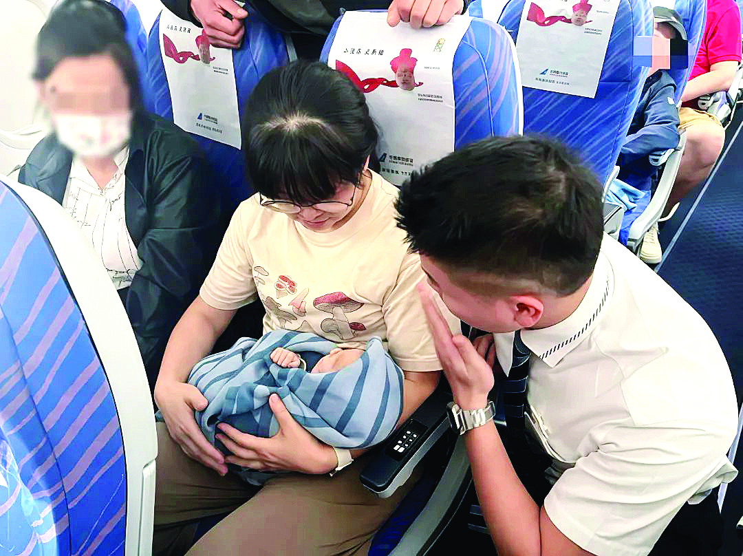 5月2日,在從喀什飛往廣州的南航CZ6835航班上,梁崎教授與兩名同行醫(yī)護在萬米高空上展開生命救援,成功救治了一名出生不到一個月且罹患復(fù)雜先天性疾病的嬰兒。