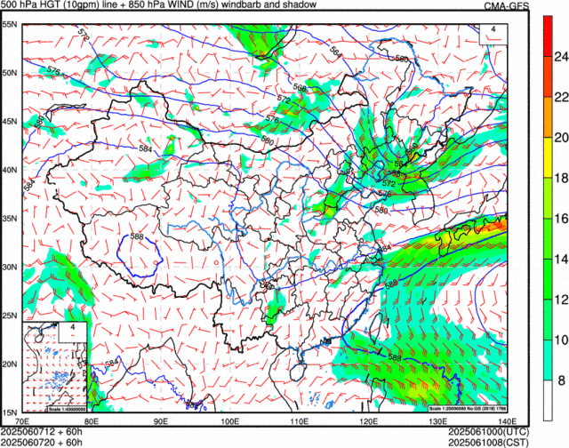 從風場圖看,右下角“旋轉”起來的為臺風。