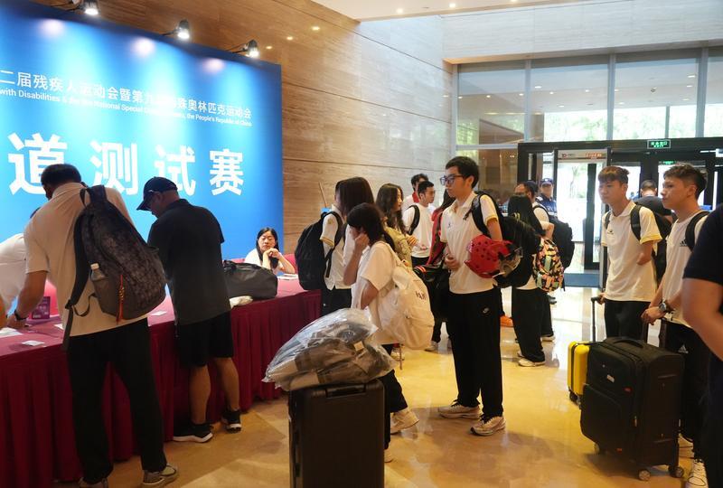 6月25日下午,參加跆拳道測試賽的裁判員、運動員已經陸續抵達惠州報到。當天,在報到酒店內可以看到,整個報到現場井然有序,裁判員、運動員在工作人員的細心引導下,依次完成報到登記、資格審查、入住辦理等相關手續。