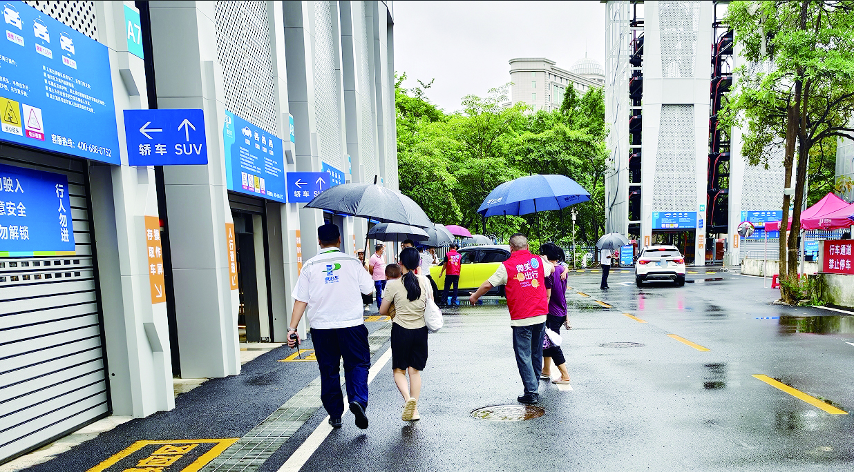 近日,惠城區(qū)江北飄著小雨,但看病的患者依舊絡(luò)繹不絕。在惠州市第一人民醫(yī)院立體式停車樓旁的一側(cè),一名身穿“惠泊車”馬甲的志愿者不顧身上的雨水,用傘為一位剛停好車的母親和她的孩子提供暖心守護(hù)。