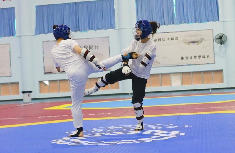 6月26日上午,參賽運動員們陸續抵達場館,開啟賽前訓練,沉浸式體驗場館設施與緊張的比賽氛圍。訓練場上,“打、啊,打、啊,打、啊”的叫喊聲此起彼伏,運動員們兩兩一隊,在切磋中相互激勵,全力以赴為測試賽做最后的準備。