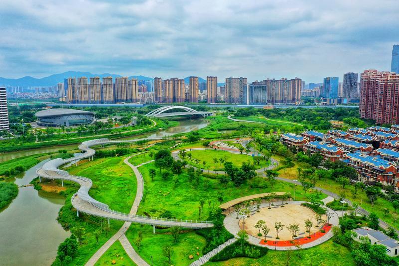 惠陽淡水半島濱水公園依傍惠陽淡水河干流,西起高爾夫橋,東至深汕高速,綿延2.5公里水岸線。碧水飛虹(水舞之橋)、空中走廊、蘆花飛雪三座景觀橋飛架河面,成為亮眼景點。園內無障礙濱河綠道與步道交織,串聯十二處景觀節點,依托天然水岸,聯動周邊設施,構建生態緩坡綠地;更設有廣場、親水平臺等休憩區域,搭配人文小品與停車場,打造集休閑運動、游賞觀景于一體的城市濱水空間。