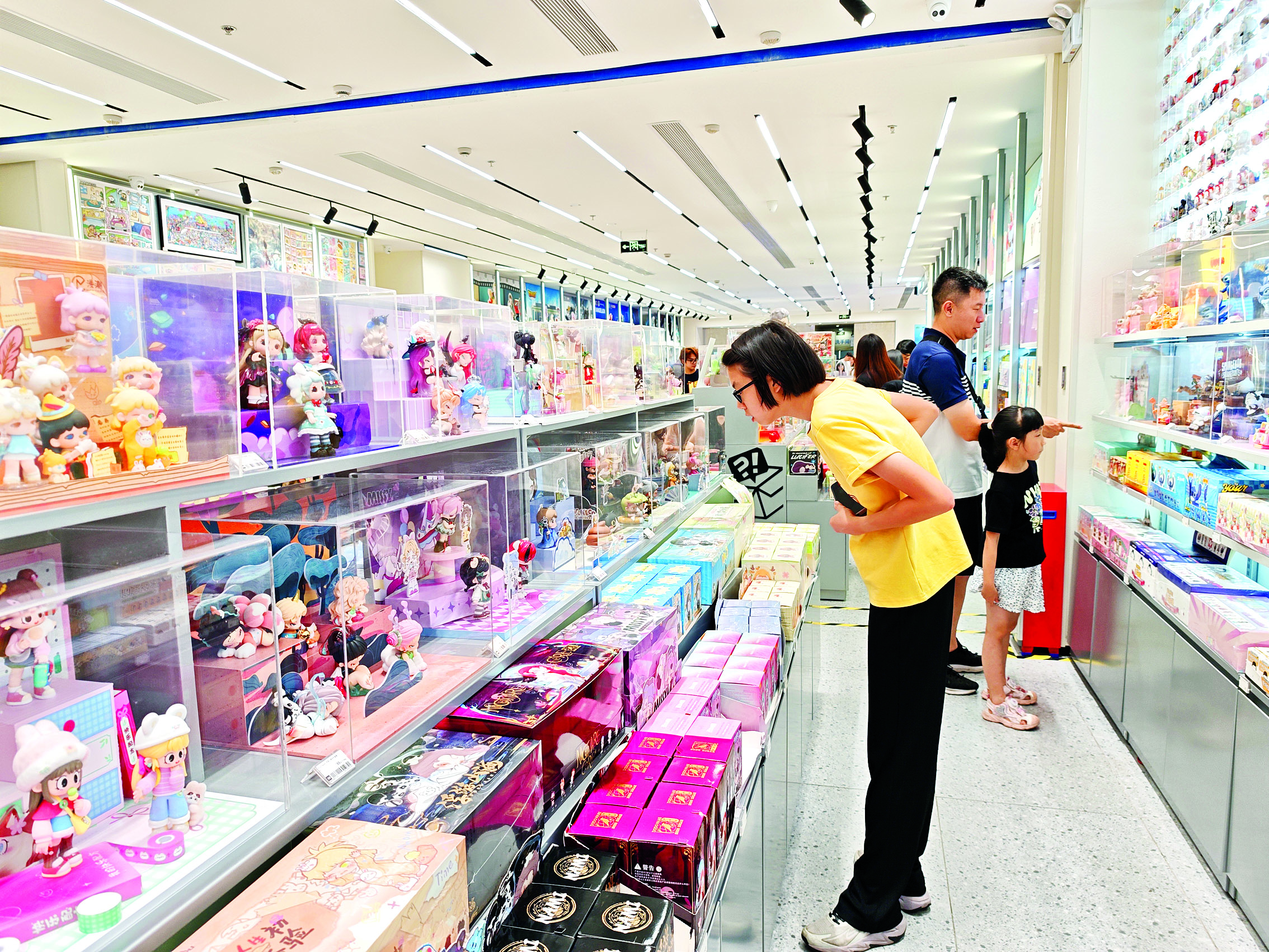 在市區(qū)華貿(mào)天地和港惠新天地等大型商業(yè)綜合體,總能不經(jīng)意遇到“谷子店”。“谷子”,即英文“Goods”(商品)的諧音,是對漫畫、動漫、游戲等版權(quán)作品衍生出的一切周邊產(chǎn)品的統(tǒng)稱。這些“谷子店”的外觀設計充滿了動漫元素,店內(nèi)則擺滿了各種IP玩偶、小掛飾、手辦、卡牌、徽章等產(chǎn)品,吸引著眾多年輕人來“吃谷”。