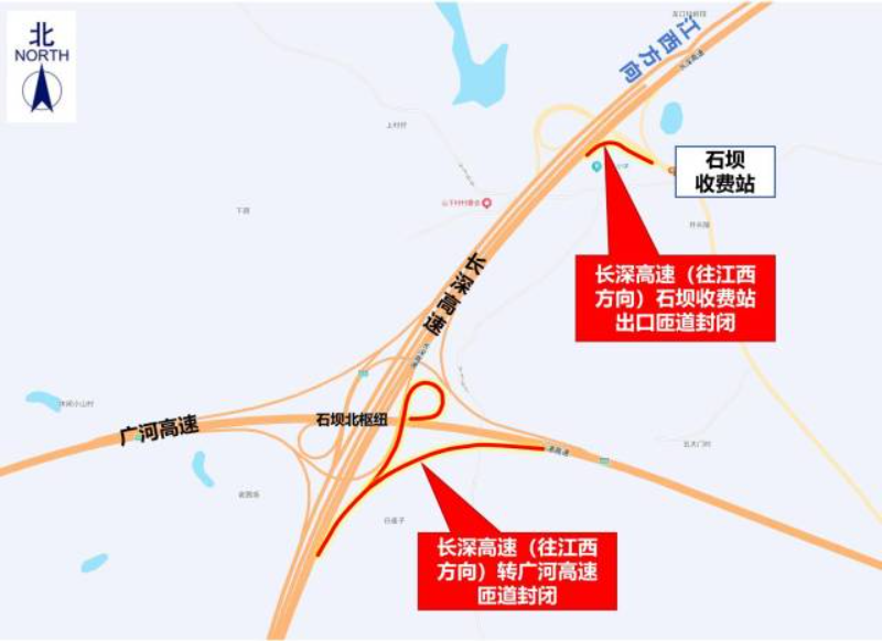 長(zhǎng)深高速江西方向石壩收費(fèi)站繞行示意圖