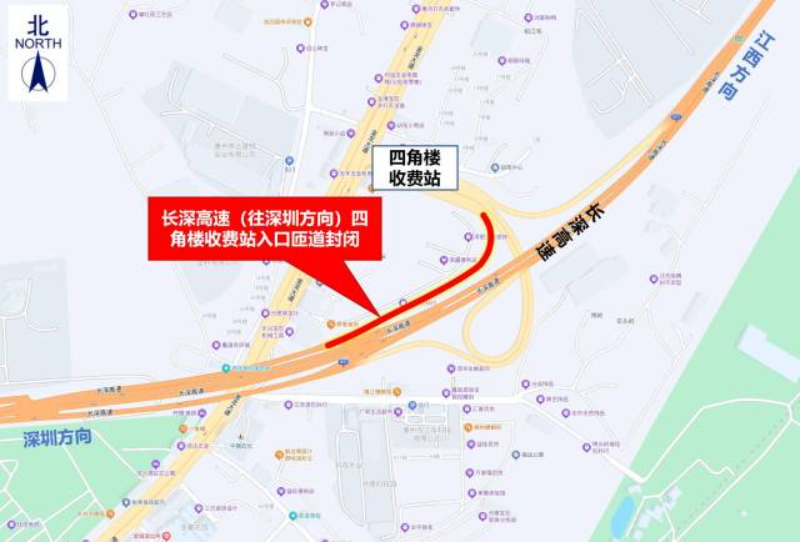 長(zhǎng)深高速(往深圳方向)四角樓收費(fèi)站繞行示意圖