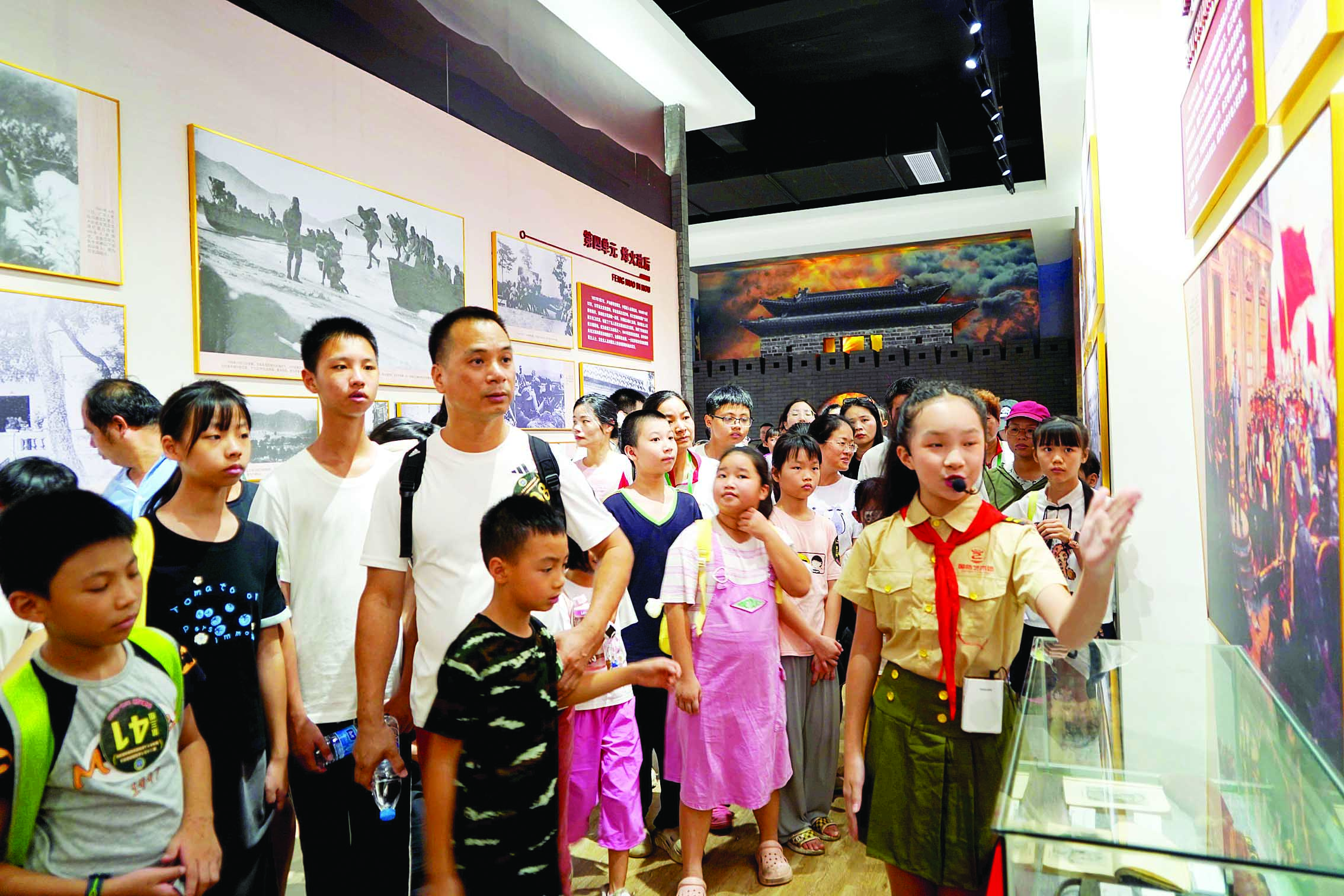國旗冉冉升起,國歌聲響徹云霄;模擬手榴彈投擲區排起長龍,孩子們躍躍欲試;國防教育展覽廳內,小小講解員聲情并茂地講述英雄故事……
