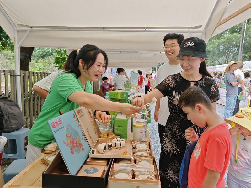 現(xiàn)場農(nóng)特產(chǎn)品市集更是人氣爆棚。來自各縣區(qū)近50家企業(yè)的“土寶貝”在此集結(jié),形成一條“可品可購可互動”的豐收長廊——龍門蜂蜜晶瑩剔透,惠城山茶油芳香四溢,惠陽荔枝酒酒香醇厚,惠東巖茶沁人心脾,博羅涼果酸甜開胃,仲愷百香果清甜多汁,每一款產(chǎn)品都承載著惠州的鄉(xiāng)土風(fēng)味。展位前,農(nóng)戶與企業(yè)負責(zé)人忙碌的身影格外耀眼,鮮活的助農(nóng)故事在市集間流轉(zhuǎn)。