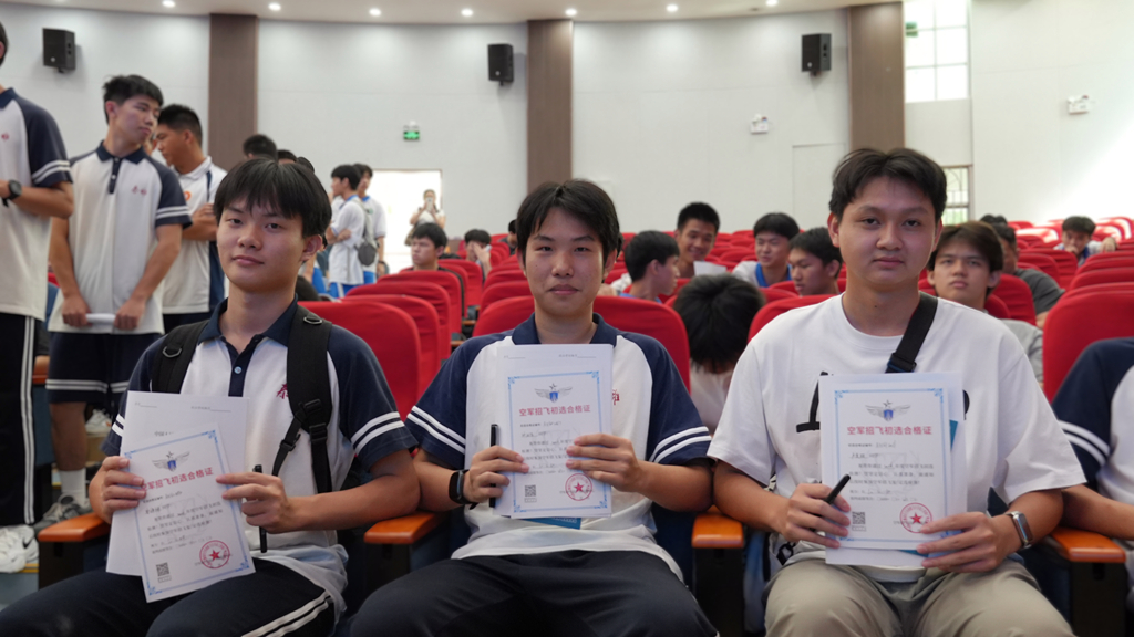 9月27日,2026年度空軍招收高中生飛行學員初選(惠州站)在惠州市第一中學(高中部)舉行,空軍招飛局廣州選拔中心派初選組到惠州,對報考空軍飛行學員的學生進行初選。來自全市各校的230名高中男生參加,113名學子通過。