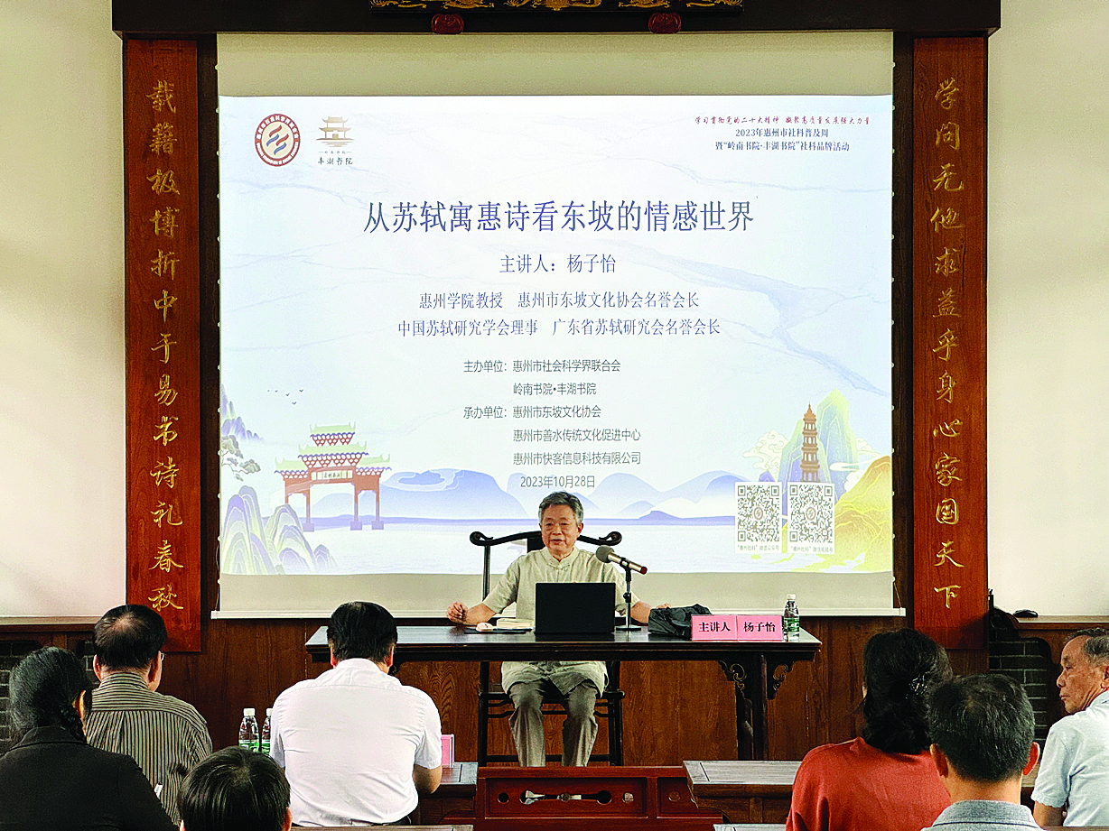 據悉,2023年惠州市社科普及周暨“嶺南書院·豐湖書院”品牌活動安排30場系列講座,楊子怡主講《從蘇軾的寓惠詩看東坡的情感世界》是該系列講座的第30場,為收官之場。
