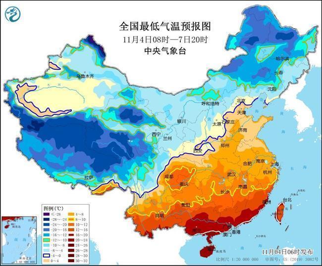 受強冷空氣影響,11月4日08時至7日20時,新疆東部、西北地區中東部及我國中東部大部地區氣溫將下降6~10℃,甘肅北部、內蒙古中東部、東北地區中南部、黃淮東部、江淮、江南東北部等地氣溫下降12~14℃,吉林中部等地局地降溫可達16℃以上,最低氣溫出現在7日早晨,最低氣溫0℃線將位于河北北部、北京西部和北部、山西南部至陜西關中平原、甘肅東南部一帶,長江中下游沿江大部地區最低氣溫將降至10℃左右。長江中下游以北地區有4~6級風,陣風7~9級,局地可達10級;5日至6日,渤海、黃海、東海等海域有6~8級風,最大陣風9~10級。