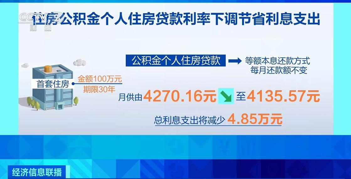 以一筆金額100萬元、期限30年的首套住房公積金個人住房貸款為例,選擇等額本息還款方式,也就是每月還款額不變的情況下,月供將由4270.16元降至4135.57元,總利息支出將減少4.85萬元。