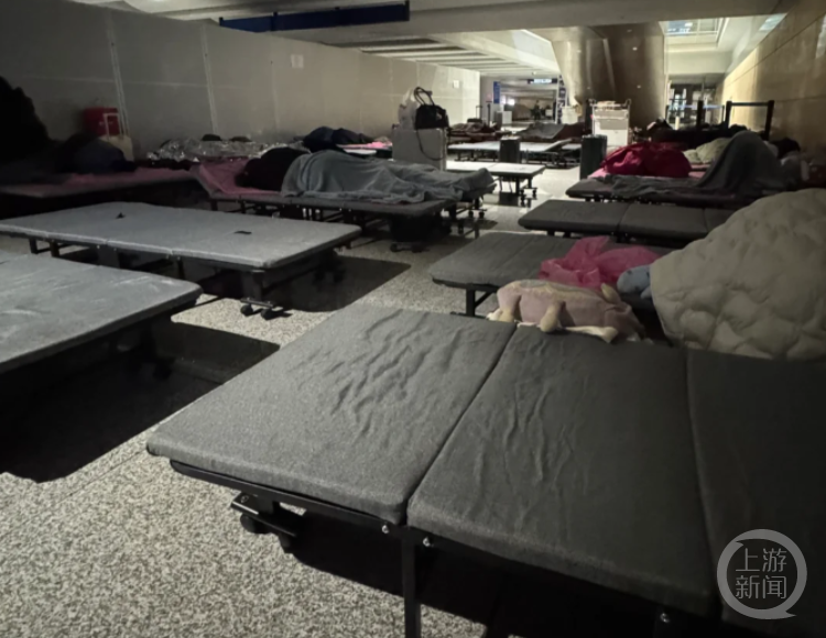 在杭州機(jī)場過夜。圖源:杭州日報(bào)