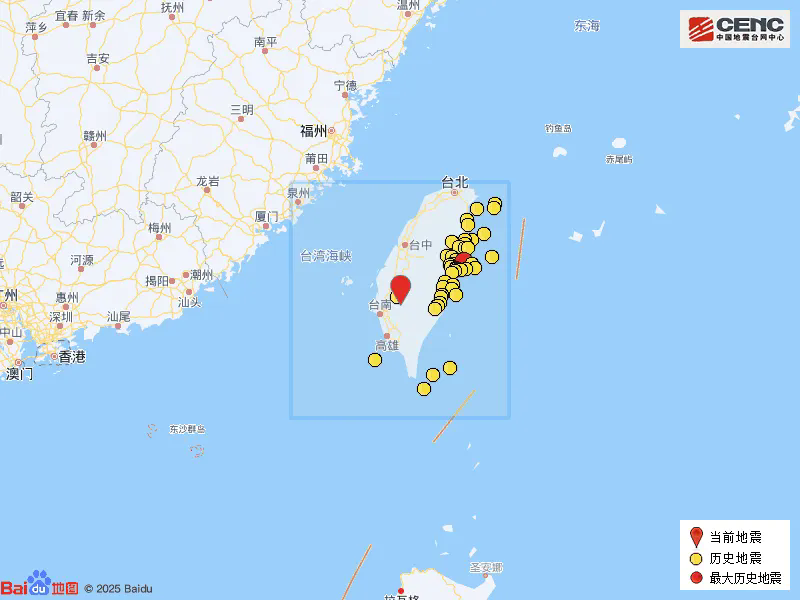 歷史地震:根據中國地震臺網速報目錄,震中周邊200公里內近5年來發生4級以上地震共370次,最大地震是2024年4月3日在臺灣花蓮縣海域發生的7.3級地震(距離本次震中135公里),按震級大小前50次歷史地震分布如圖。