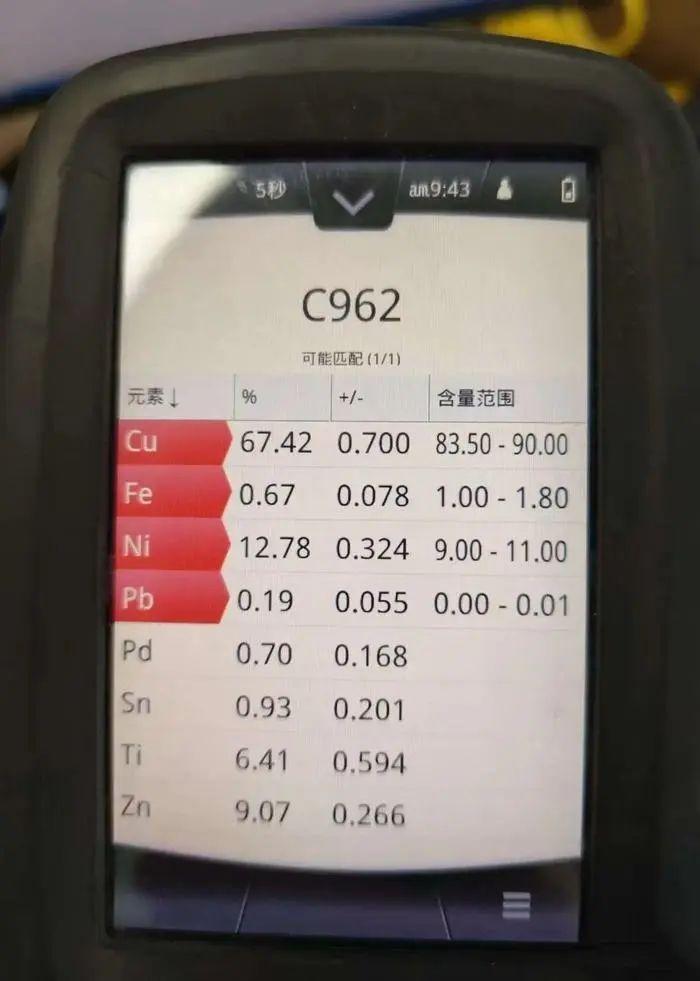 6月25日,陳女士在佩戴所謂“沙金”手鏈后,發現其竟能被磁鐵吸起,于是借用光譜儀對飾品進行了材料檢測,結果發現該手鏈材質是銅鎳合金,甚至含有鉛、鎳等潛在有害成分。