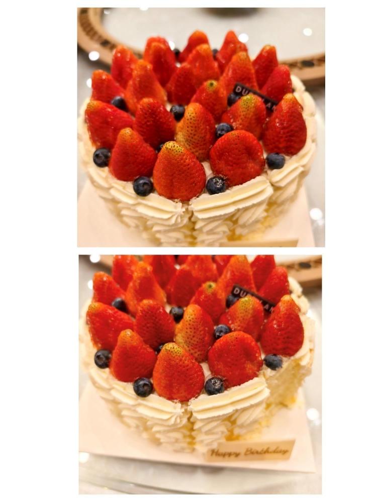 △人工智能修改偽造的網購蛋糕磕碰破損圖片,原圖和偽造圖對比