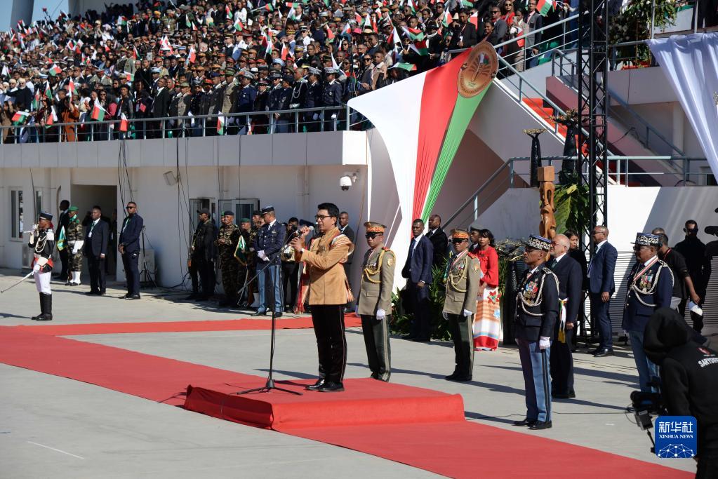 當(dāng)日,馬達(dá)加斯加舉行國慶日閱兵活動,慶祝獨(dú)立63周年。新華社發(fā)(西塔卡·拉喬納里松攝)