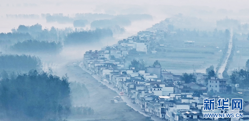?初秋時節,安徽省阜陽市蒙洼蓄洪區晨霧繚繞,村莊、田野、道路在輕紗薄霧氤氳下,若隱若現,如夢似幻。新華網發(周輝 攝)