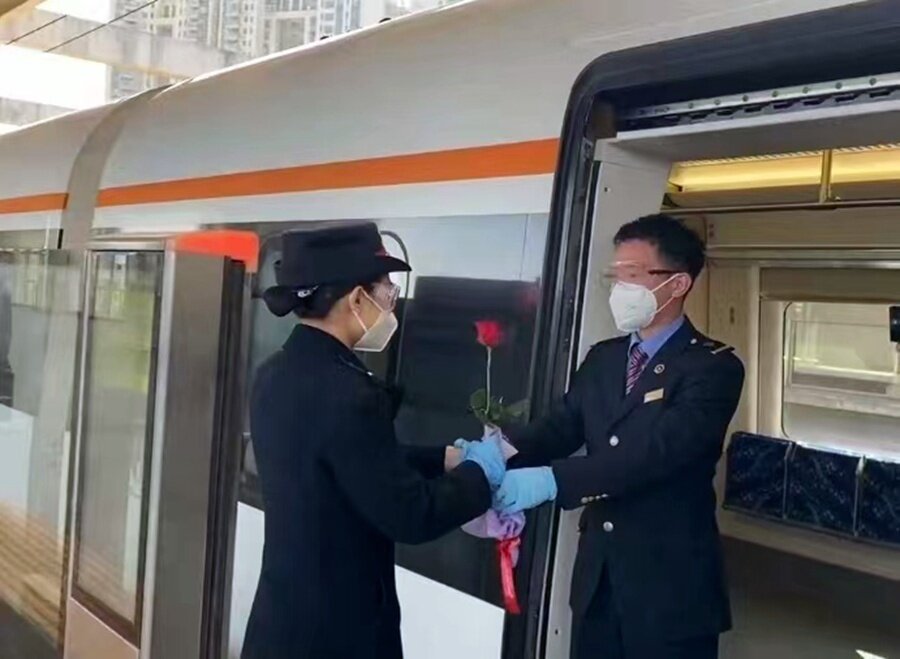 由于工作的特殊性質,兩人聚少離多,同為“鐵路人”,讓彼此多了理解和包容。因為兩人見面機會很少,遇到同時休假時,劉明森會早早到小金口站迎接女友下班!昂推渌閭H相比,我陪伴她的時間確實是太少了!眲⒚魃f,疫情期間,為了確保運輸安全,單位施行封閉式管理,許瑤睿被賦“紅碼”需要居家觀察,作為男友的他也沒能在身邊陪護。