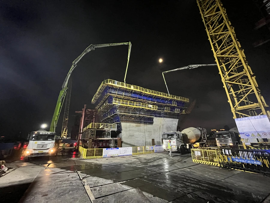 7月30日凌晨1時許,歷經17個小時連續施工,中鐵廣州局鵝城大橋最關鍵的控制性節點—ZP3墩身完成最后一次澆筑,為全橋的鋼梁架設施工奠定堅實基礎。