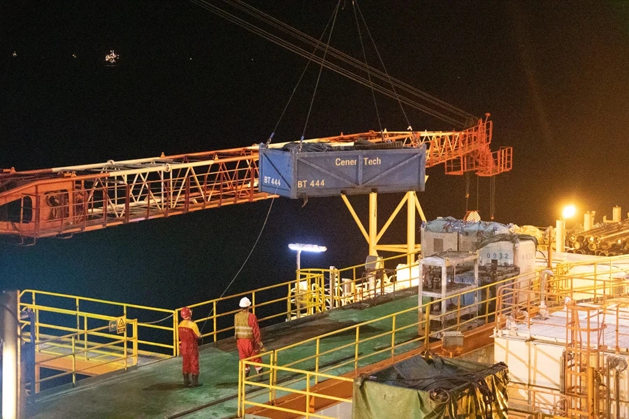 項(xiàng)目組通過(guò)自立科研項(xiàng)目“導(dǎo)管架定向打樁理論研究”,構(gòu)建了精準(zhǔn)的隔水導(dǎo)管定向打樁計(jì)算模型,消除了加密井眼碰撞風(fēng)險(xiǎn);針對(duì)砂礫巖海水鉆進(jìn)易垮塌特點(diǎn),創(chuàng)新性地添加提粘材料,增加封堵攜砂性……在眾多創(chuàng)新技術(shù)的加持下,今年4月15日六口井表層鉆井作業(yè)安全順利完成,表層整體較歷史井提速50%,提效43%,達(dá)到歷史最高水平,超預(yù)期完成表層作業(yè)階段攻堅(jiān)提速的目標(biāo)。
