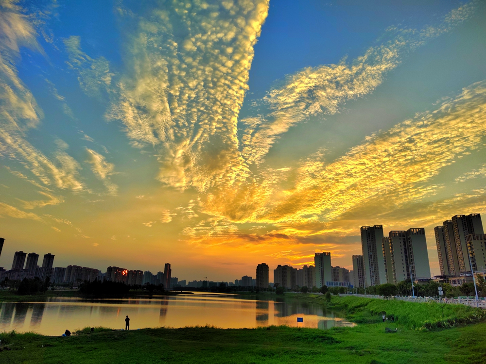 10月14日18時許,惠城區上空出現夕陽余暉,天空中多種色彩碰撞,云彩猶如鳳凰展翅,美麗如畫,吸引市民駐足去定格這一美好瞬間。