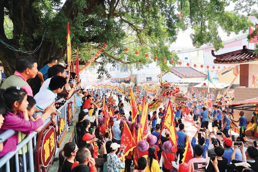 當日巡游的規模宏大,來自8個村的巡游隊伍綿延數公里,在平海圩鎮、平海古城的大街小巷中穿梭,吸引了眾多游客參與和觀看。